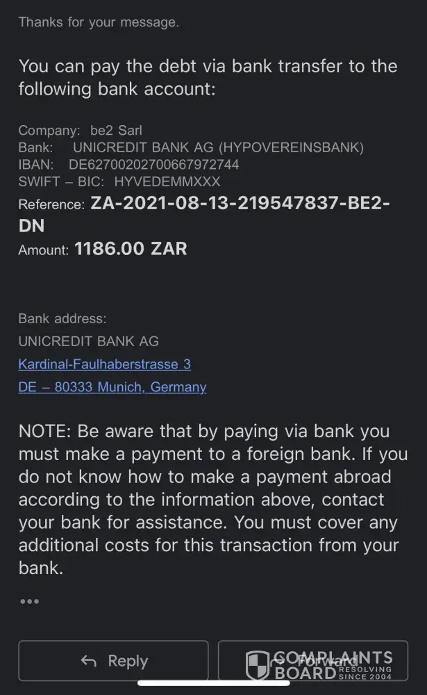 Have they resolved your query. They’re now asking for additional money. This is never going to stop. I had to cancel my card to avoid further deductions. Just imagine. Now proof of the 999 ZAR option I opted for