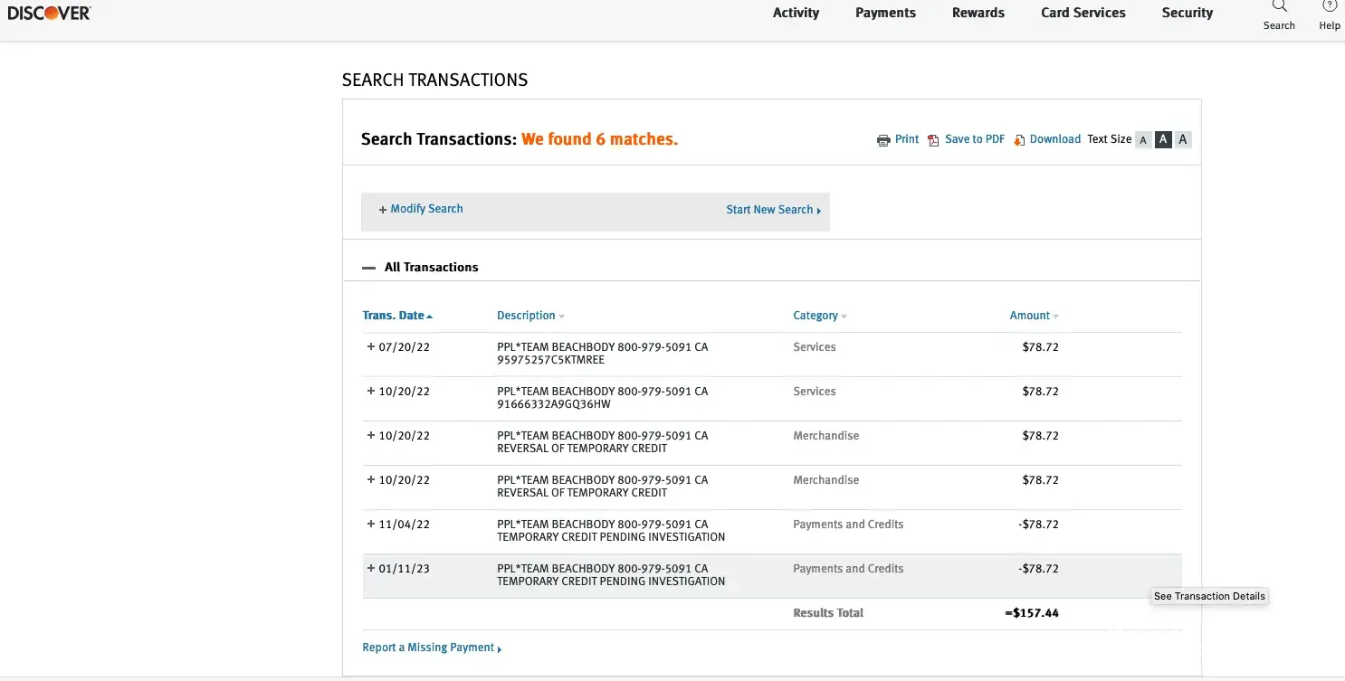 In July 2022 and October 2022, we all of a sudden started getting charges on our Discover Card from Team BeachBody. While we had used Beach Body Fitness products in the past, we did not sign up for any subscription starting from July 2022, nor did we purchase any merchandise past April 2022.