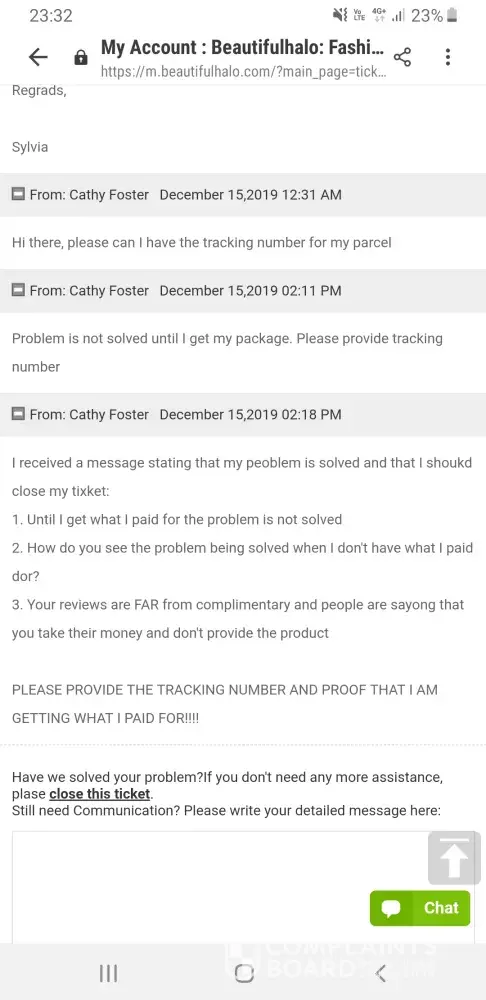 I am getting ready to contact my credit card company and request a payback from you folks. Please, please beautifulhalo — contact me asap. Thank you.