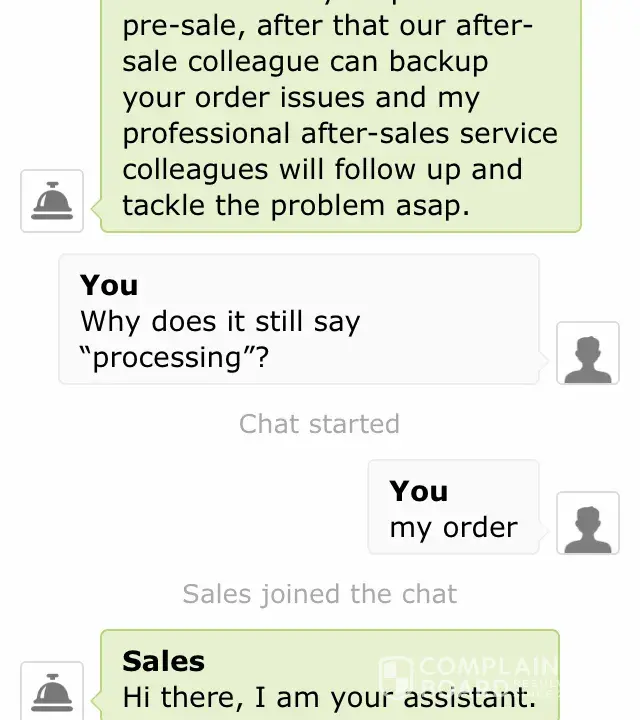 Now two weeks after receiving the items, which is the expiry of their refund period, I contacted the live chat again - they did not respond to my messages even though they were connected.