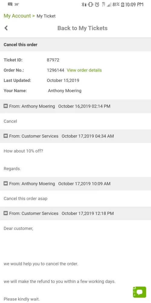 Never ever again ! Stay away ! this is a Con Web! Waited for 40 days for my order and received nothing ! Refused to cancel my order !