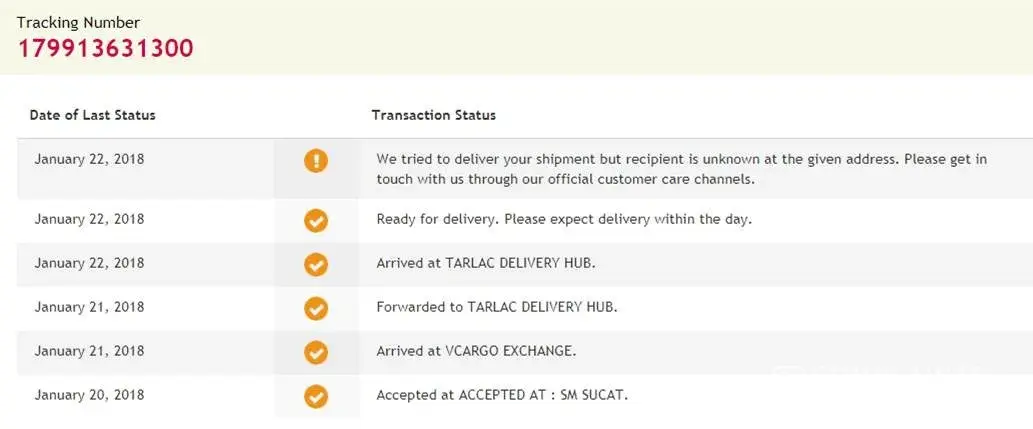 Hi, I am expecting the parcel([protected]) since yesterday Jan.22 and no delivery happen, and then I spoke to LBC branch and says di matagpuan ang receivers pero nkapunta sa address na nakasulat how incompetent your services. This is not the first time na nagarrange ako s LBC ngayon pinafollow ko ulit kung san makukuha sinabe na kailangan ko pa pumunta...