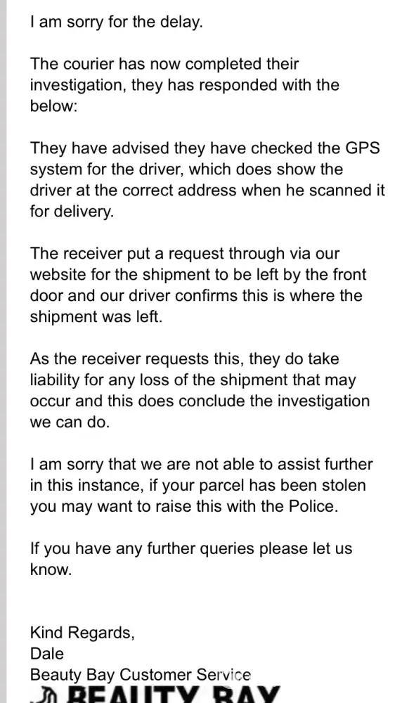 - While Beauty Bay has a high level of trust, our investigation has revealed that the company's complaint resolution process is inadequate and ineffective. As a result, only 0% of 11 complaints are resolved. The support team may have poor customer service skills, lack of training, or not be well-equipped to handle customer complaints.