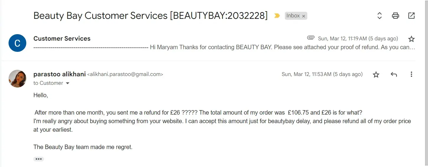 BeautyBay are refusing to take ownership nor deal with the complaint regarding these orders. In total BeautyBay has not provided the goods amounting to £106.95