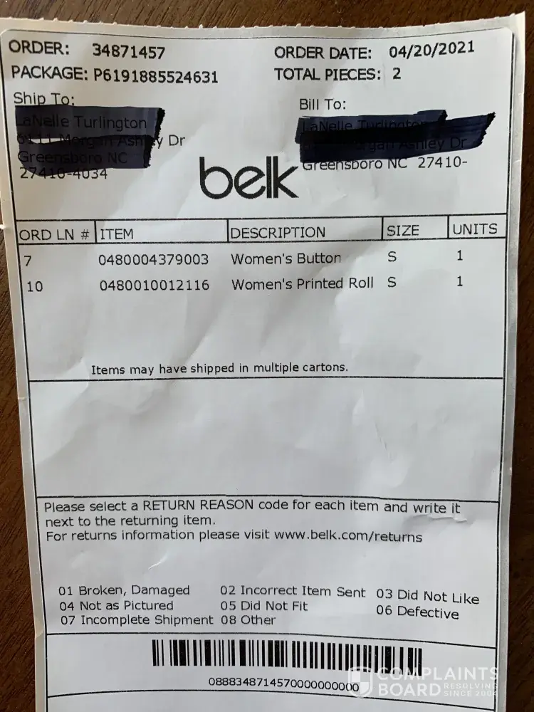 I ordered the item. I never received the item but received a bill and was advised to pay the bill even though I never received the item. I have opened the claim with Belk (Case # 5346118) No one called me or acknowledged my case number that I opened through the customer representative for over a month. I even asked to speak with a supervisor. Samantha the supervisor almost laughed at me and said that she can't refund me until my case will be reviewed. No one reviewed my case for over a month and every time I call being asked to wait for 5-7 business days respond. It is going for almost 2 months now. Please help to resolve this issue!