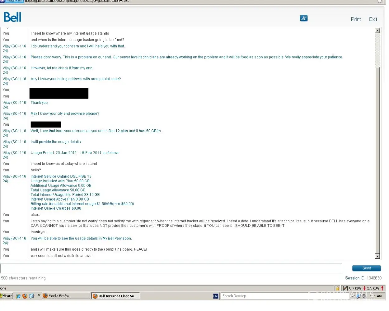 I had a feeling that BELL's representative would be able to see my usage, but I wanted to prove it.