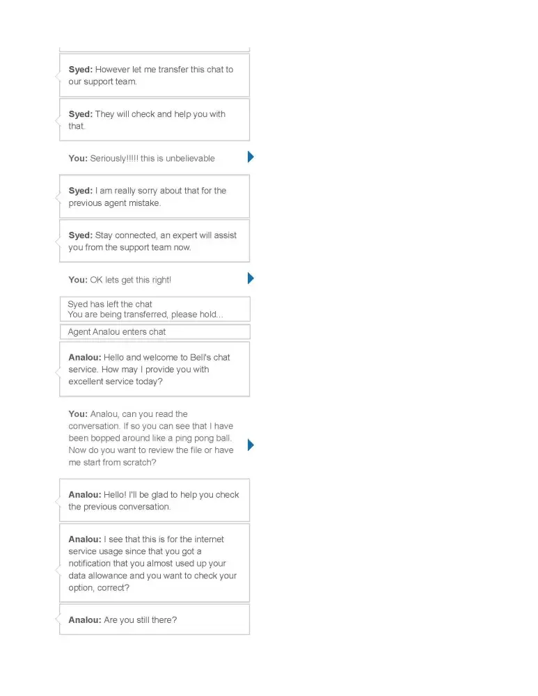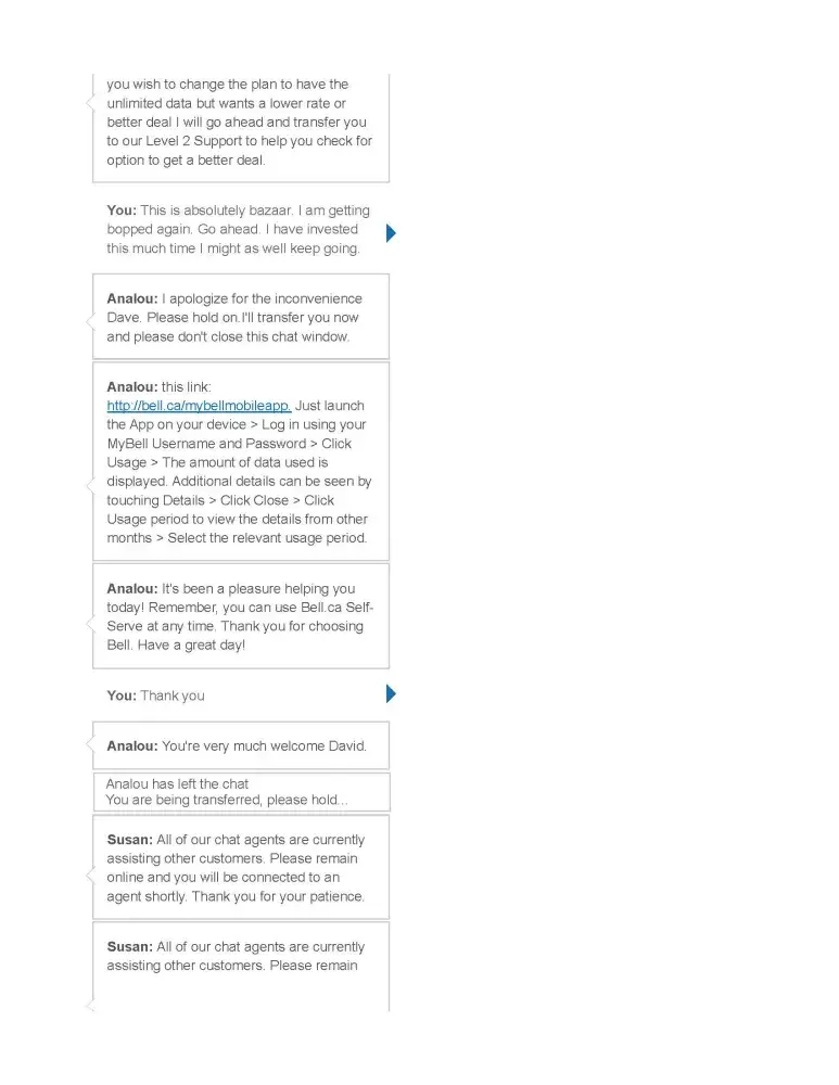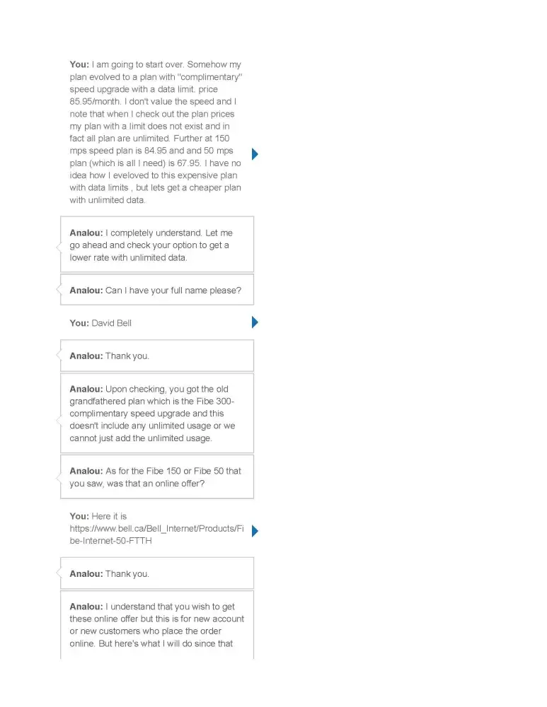 Well that was it for me and I made arrangements to switch to another company, who assured me that though they used BELL lines there would be no interruption as they have an arrangement with Bell and the switch over is almost always seamless.