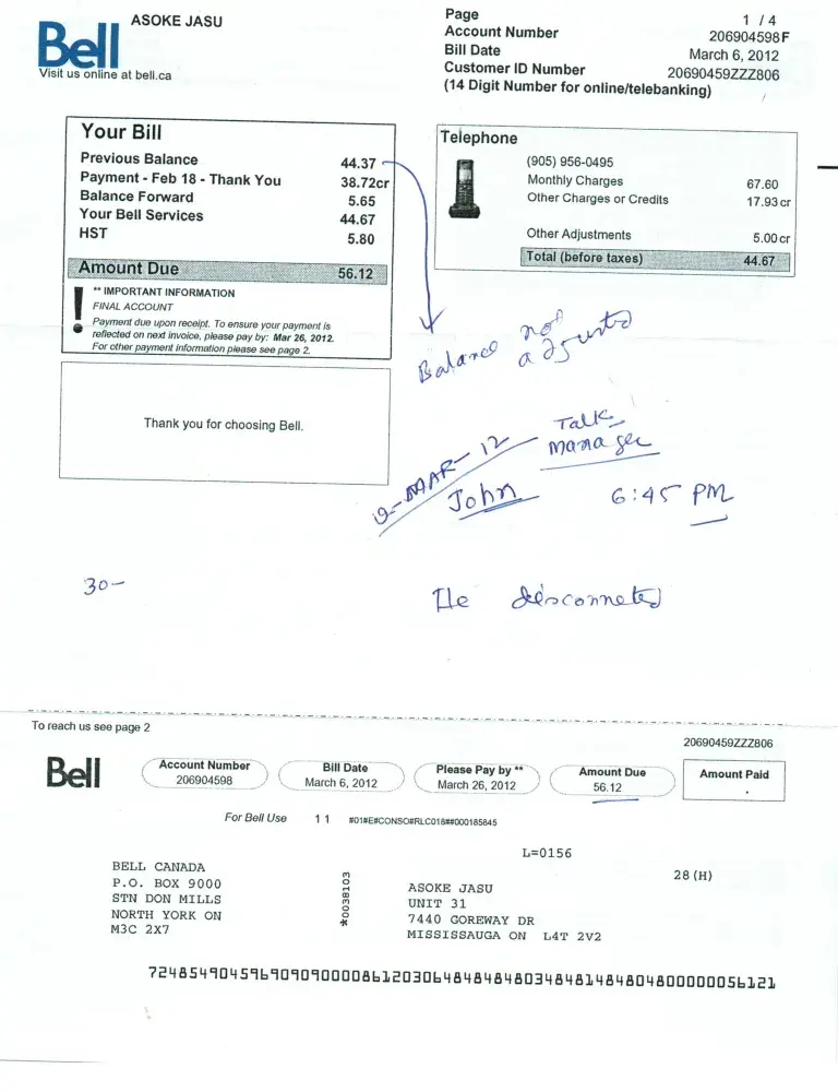 I called many times and then sent three letters with my claims and demands to examine this situation. However, Bell representatives completely ignored all of my arguments and reasons and I didn’t get a single official answer to all my letters. My conversations with them by phone were like a conversation with a parrot who just knows four words. They didn’t listen to me and only repeated one phrase “you have to pay”.
