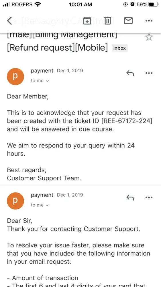 Hi I emailed someone at be naughty the other day and they said they were going to give me a full refund, and that it would take 4 to 5 business days. Its been 5 days and I havnt recurved the $92 they said they would refund. I was just seeing when the money will go back into my account. I have the photo of the withdrawal, one of them is 60 and the other is $30. If you could email me back at [protected]@outlook.com