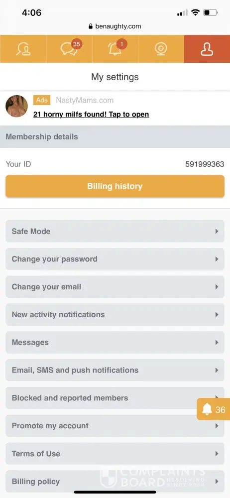 I signed on the dating site benaughty choosing the option fot three days use. But I saw that they are going to charge me repeatedly every month.Now that I saw, that most if not all the profiles are fake, I'd like to cancel it. I would like to stop the automatic payment of my bill for the dating site benaughty but I couldn't find out how to do it exactly...