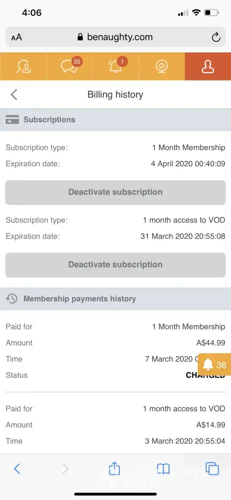 I made an account on benaughty.com and came to find it wasn't as interesting as I'd hoped it would be. I've tried cancelling my account 5 times and each time they never send the email with the code for cancellation, this entire site is pointless and a waste of time. I want to cancel my subscription and move on with my life but they're holding my information hostage.