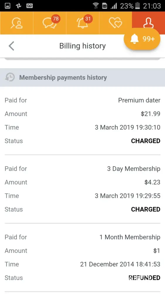 They set up fake and scam profiles & messages of people (girls) that do not exist. Everything is done just to make you sign up. I was getting invites from girls before I even signed up, all gone now that they got my money.
