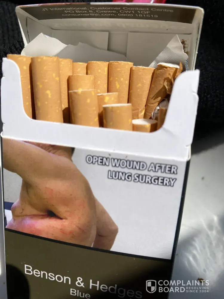 Bought a packet of cigarettes on way to work opened them up and they are damaged.