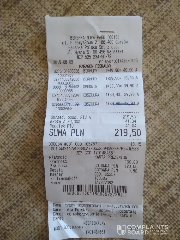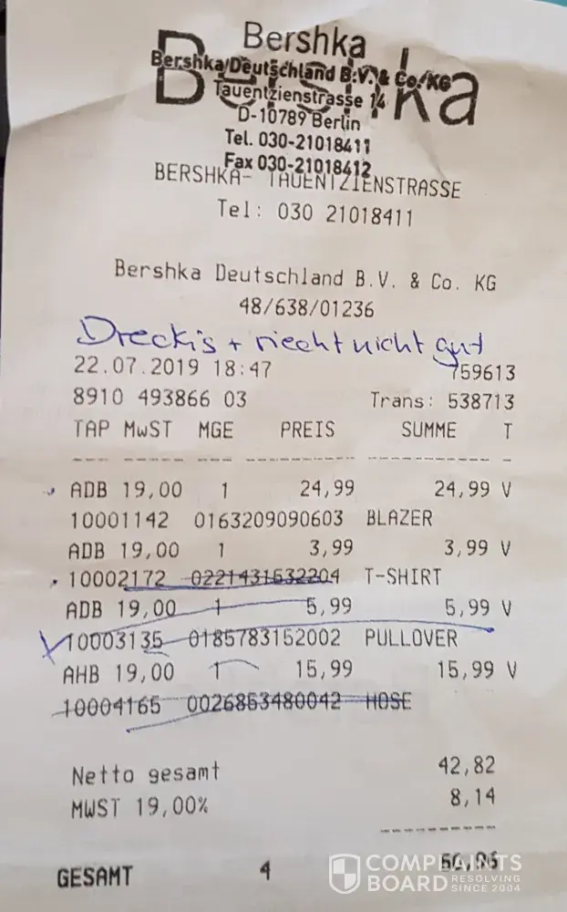 We chose to buy from bershka, as it is a respectable store, however it turned out that it is a low quality service store.