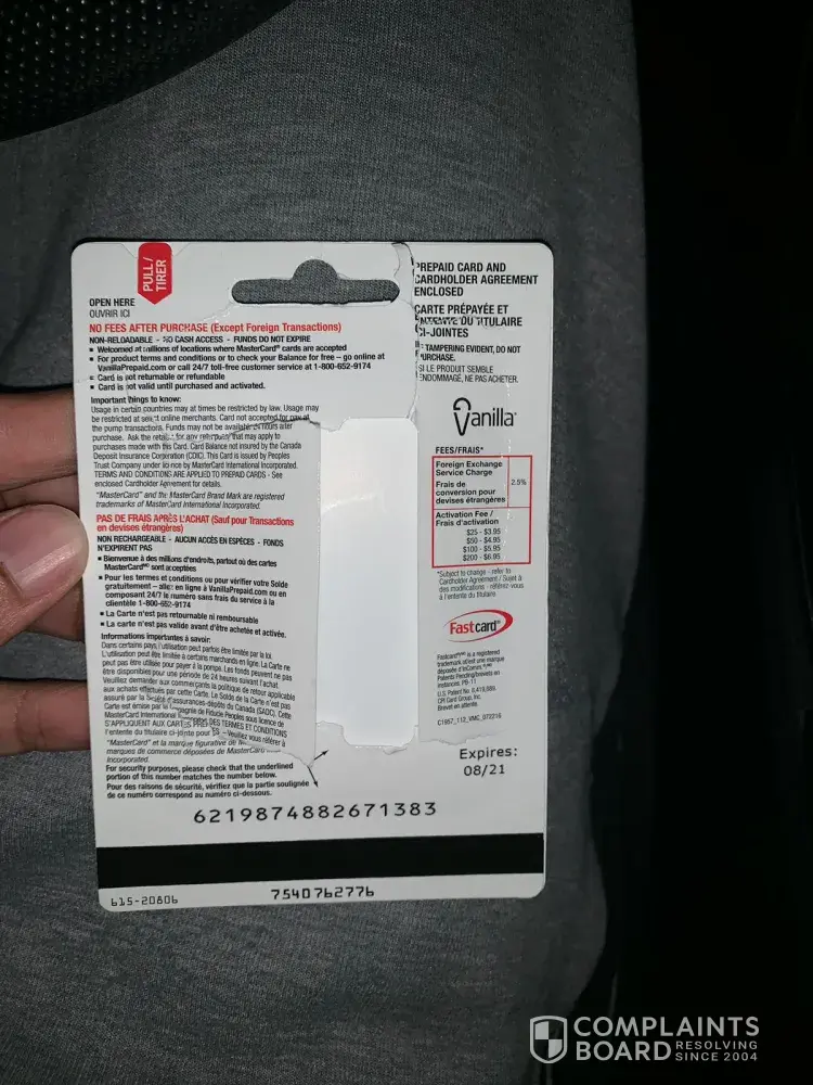 2019/10/10 @14.12 pm i purchased a gift card ( mastercard) from the above location. I open the card by myself no one else touched it. I paid the amount from the best buys gift card and difference from my debt card. When at night i tried to use it online with groupon i couldn't so i decided to register the card online per instructions. I wasn't successful...