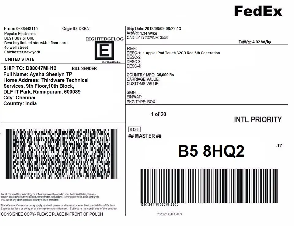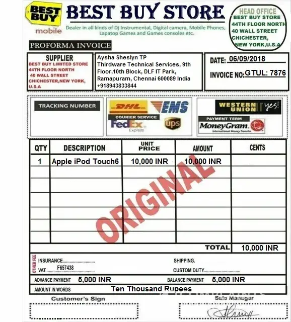I have ordered an iPod from a seller in US who couriered me the same to india with the invoice from Best Buy store and through fedeX courier. But later they contacted me telling that the courier is held at Indian port for customs duty and I have to make a payment for the same to them (the sellers) so that they can release the courier. But my experience so far is fedex paying the customs duty on our behalf and collecting the same from us while delivery by giving us the bill. Sometimes even we'll be asked to submit KYC. So this new strategy raised some doubt in me. I am attaching the invoice and fedex acknowledgement slip alongwith. Kindly have an enquiry on this case and let me know.