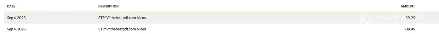Use thebestpdf.com on August 29, 2025. Did a one-time download for 99cents and a 7-day plan for $1.95. Seven days later, on September 4, I was charged 2 x $39.95 for two monthly subscriptions which ran concurrently. How is it even possible to have two 30-day subscriptions running at the same time?! I reached out the company immediately and requested a...