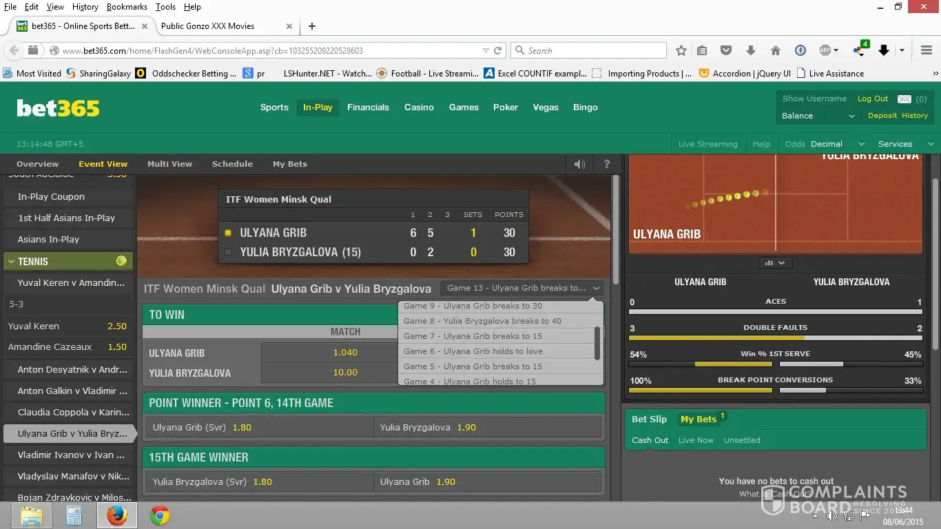 I won a bet in BET365, everything was wine, the bets were settled accordingly.After 4 hours, they took all my winnings from it.BET365 continuously took bets throughout the match for entire games without any problems.I have faced these issues from bet365 earlier such as change in player name etc. If you win, they will not give the bets back, if you lose they will not give your stake back.I have the screenshots.Here in game 8, yulia bryzgalova breaks to 40.that was my bet. Later, after 4 hours they took my winnings back.As you can see, they have accepted the bets after game 8 continuously, no stopping them.BET365 tries to make money from this situations a lot