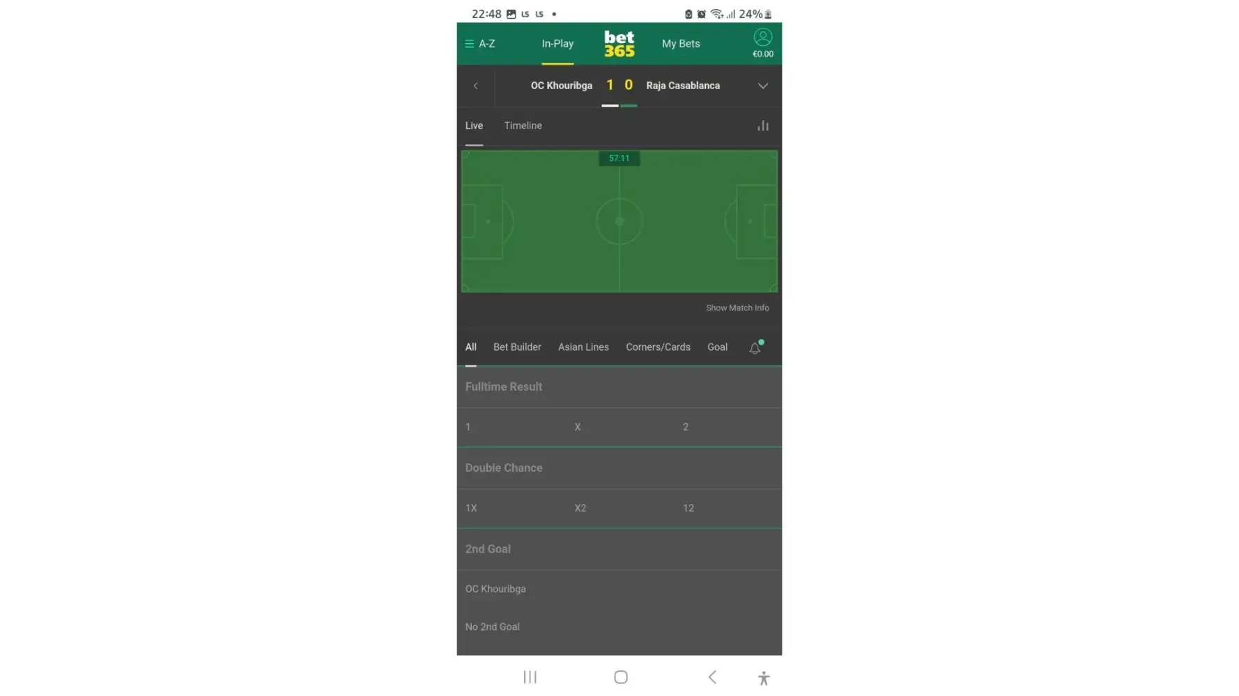At the match of OC Khurigba Vs Raja Casablanca a goal was scored from Khurigba some moment on the 2nd Half. I was given the chance by the system to do check out. I did and I instantly did a withdrawal to my debit card as well.