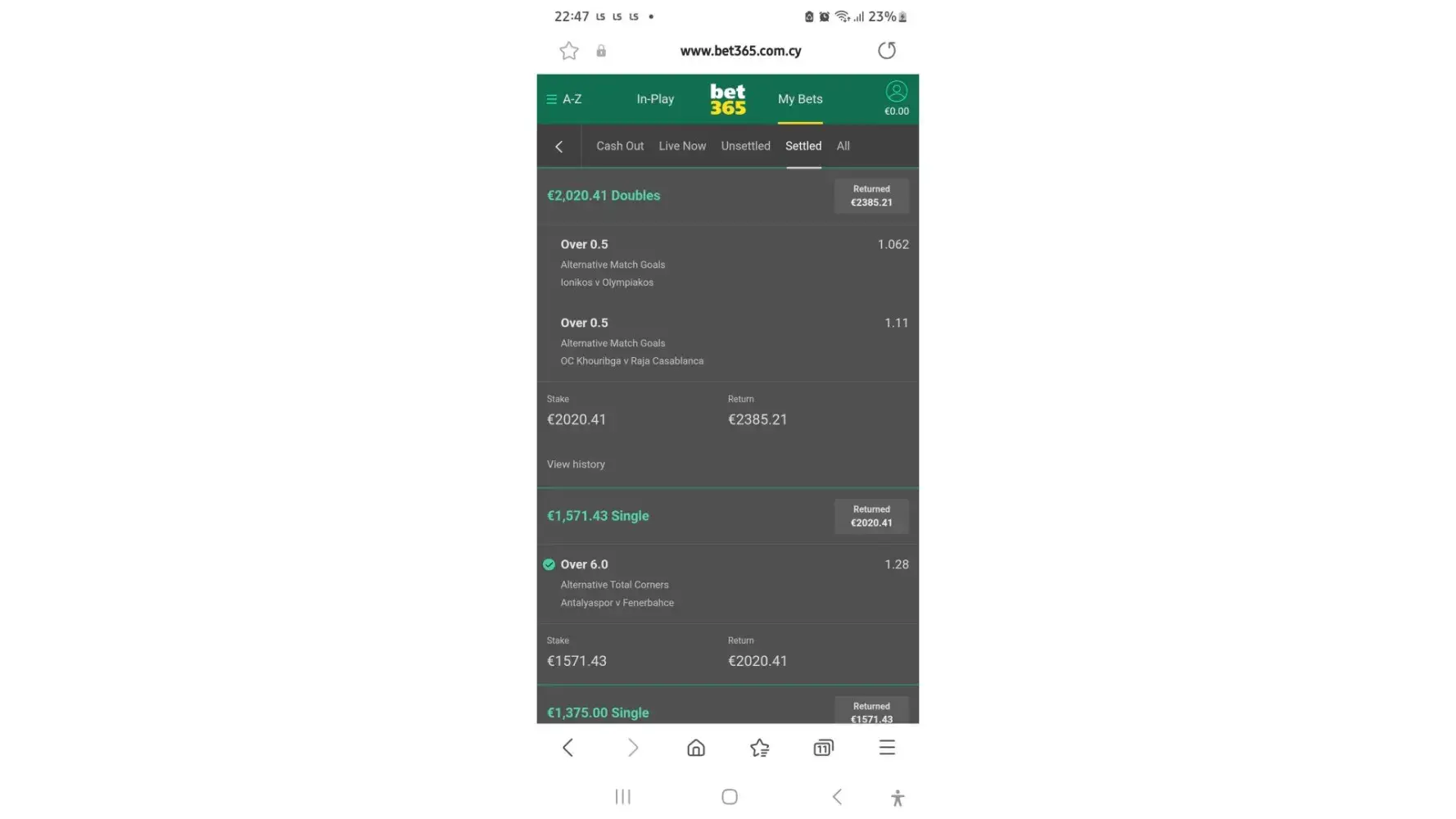 I put a stake (3rd January 2023) for the match OC Khurigba Vs Raja Casablanca for over 0.5 goals. On the same stake was Ionikos Vs Olympiakos Pireus also for over 0.5 goals (that was clearly won).