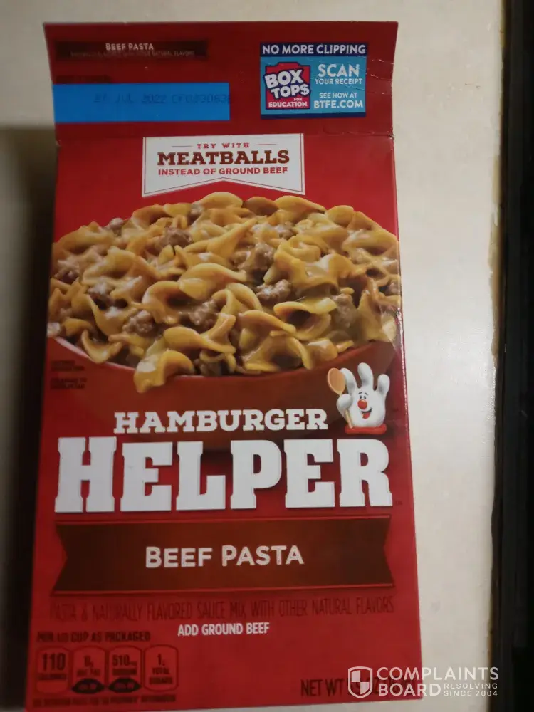 march 6th 2017 I am poor used the last little bit of meat I had to make hamburger helper cooked the meat opened the box added the ingredients per instructions then oh my god little black worm looking things come out the box in my pan (last of my meat) was too late to save the meat so I will not be eating for awhile now and I will never buy hamburger helper again! the upc # is(was)[protected]-3 expiration date:may 22 2017 I put everything in a sealed plastic bag as not to contaminate my home so I cannot take a picture code #cf030287 I do not have a receipt I don't keep them I would really like a refund or some sort of resolution I lost my meat (1 lb hamburger) my dinner for myself and my daughter who cannot eat now
