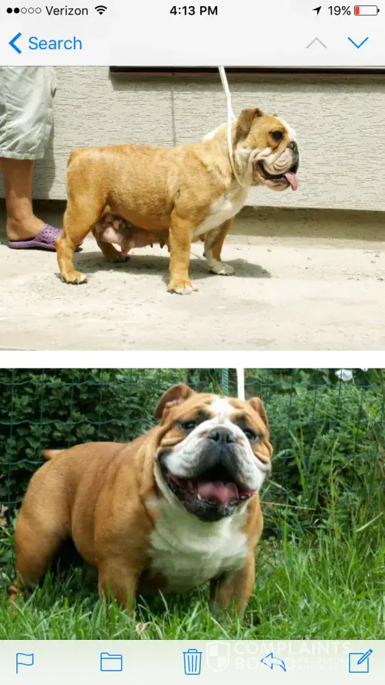 This is in response to a complaint posted on 02/28/2009, pertaining to a English Bulldog that was purchased on January 29, 2009. First, this complain does not have a name of who placed.