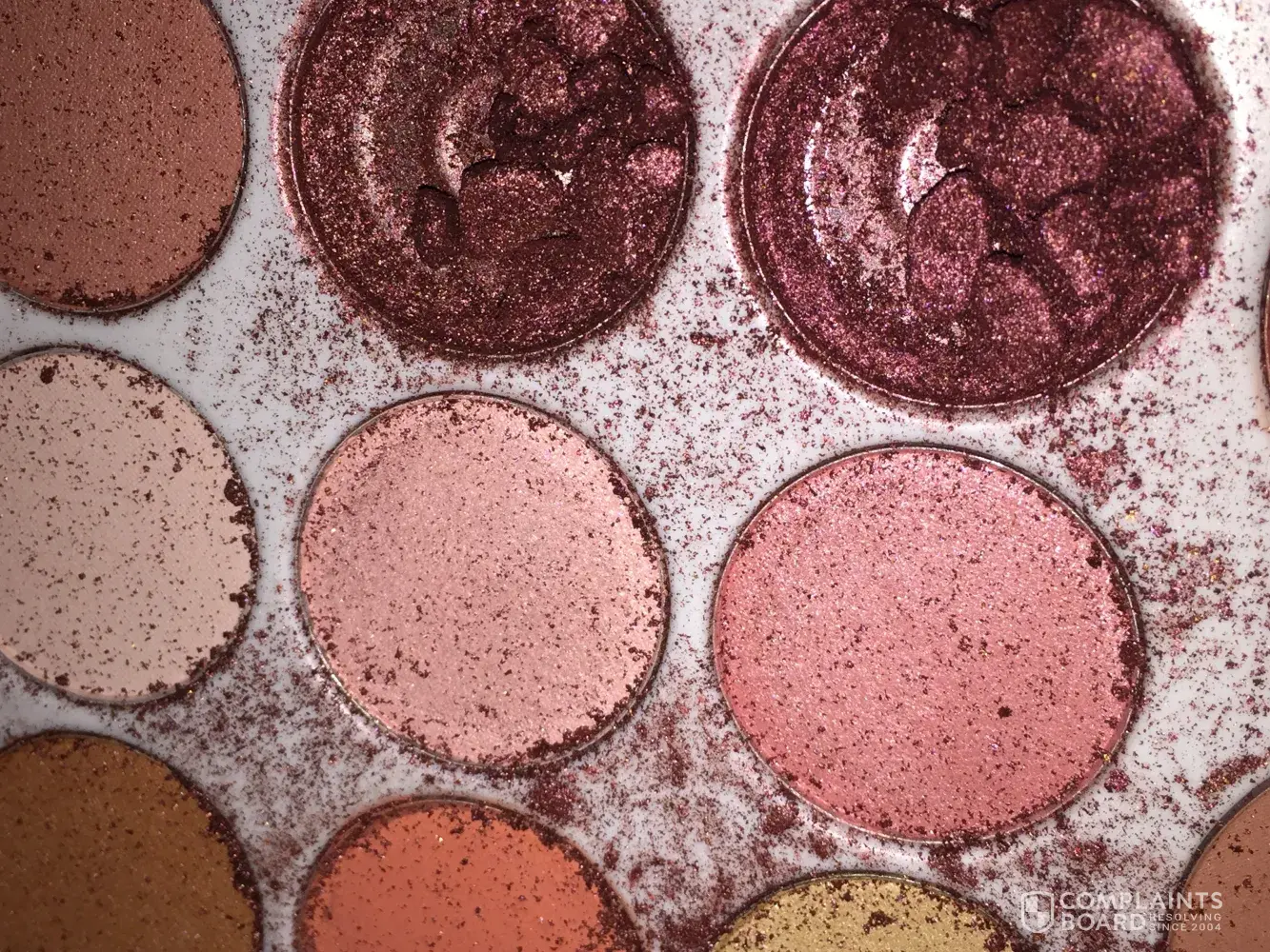 The box was smashed, and the package itself was covered in broken eyeshadow. I opened it to see the damage, and sadly it's beyond repair. How can I acquire either a refund or a new pallet?