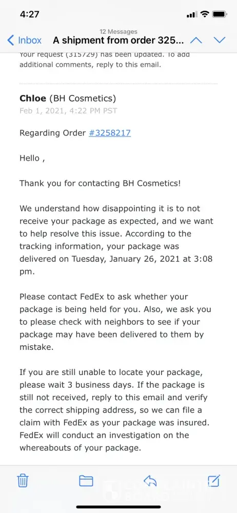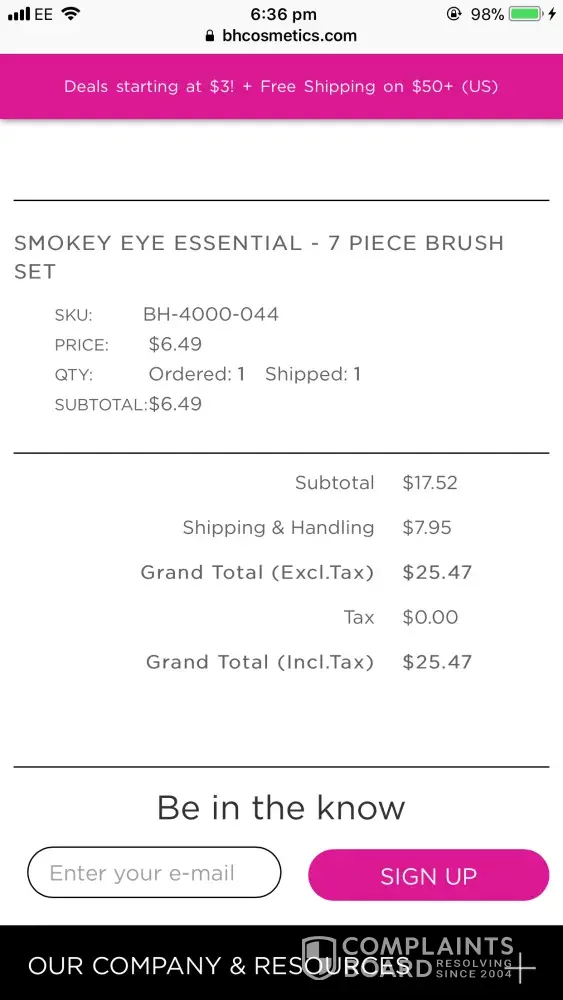 I ordered three times from BH Cosmetics. The first time, the shipment was late. The second time, there was a broken item. The third time, and entire eyeshadow palette worth $20 was missing. I contacted the company and got a run-around. First, BH Cosmetics pretended I did not identify the missing item (which I had clearly identified). I sent another e-mail and again identified the missing item. Next, BH Cosmetics demanded that I photograph the order. How was I to photograph an item that did not arrive? It's just a ploy to prevent customers from getting any help. So I notified PayPal that one item was missing from my shipment and that I was asking for a refund on that item only, for $20. PayPal opened a case. BH Cosmetics never replied to PayPal. It is not safe to shop at BH Cosmetics. Something will always go wrong, and BH Cosmetics will never make anything right for the customer. Don't shop at BH Cosmetics! There are plenty of reputable cosmetics companies out there. You don't need BH Cosmetics. I am never shopping there, ever, again, and I will never forget how I was intentionally cheated.