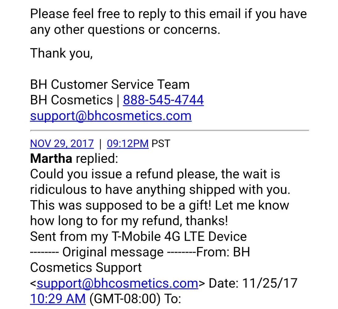 I have been contacting bh cosmetics via email several times to solve my issue. But i had no response from them in a while now. Considering i had emailed them a lot.