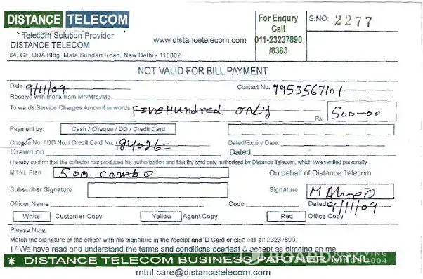 monthly bsnl mobile & landline bill paid receipt since April-09