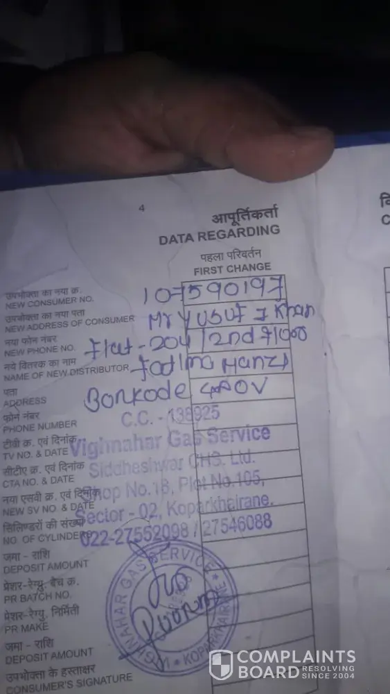 We have recently shifted from Mumbai to Ahmednagar. We have transferred our Gas Connection of Bharat Gas from Mumbai to ANR.