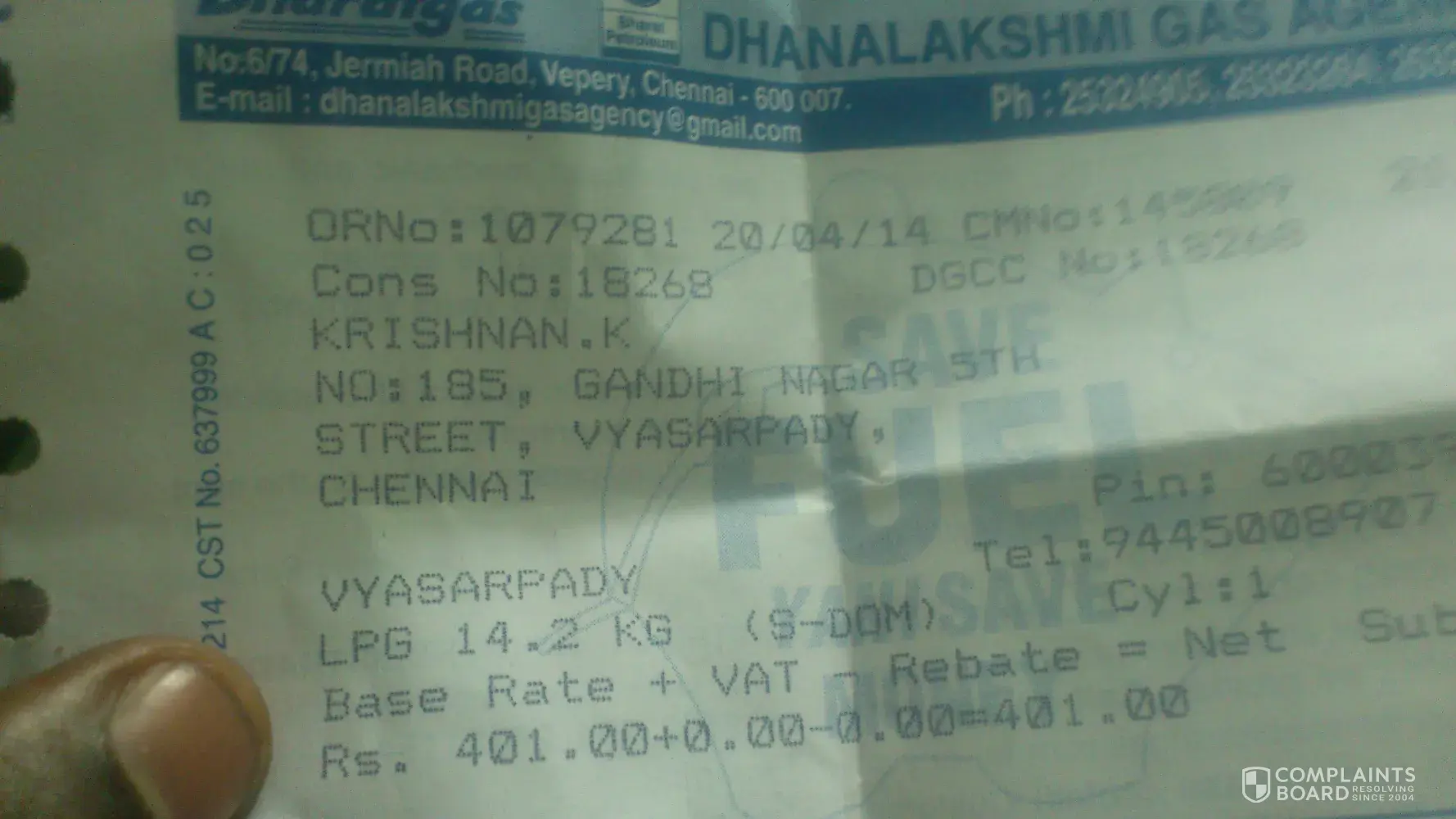 HI Team, am a consumer of BharatGas with his distributor dhanalakshmi gas agency jermiah road vepery chennai 7, today a guy delivered a cylinder, and home people paid him rs 410, which is more than billed amount, but the guy who delivered took back the cylinder and asking to pay rs 420, and threatended the home people, used abusive words, if this exists anymore, am going to complaint in consumer court and also to the grevience, Customer ID :18268 bill num CMNo:145809, if action is not taken, will take legal steps against the agency and also towards the guy who delivered,