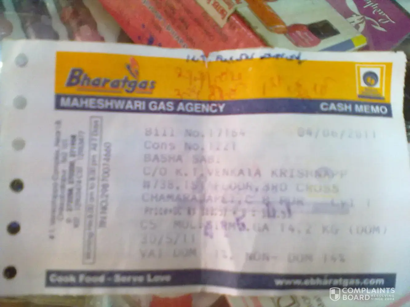 i booked cooking cylinder on date 27.05.11;i received the cylinder on 26.07.11, vide bill dated 04.06.11, BILL NO.17164.amount rs.360.57
