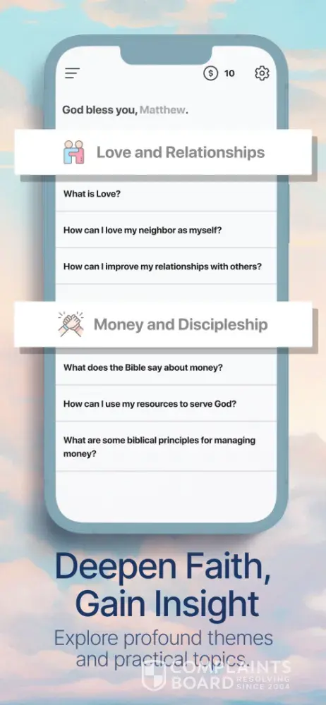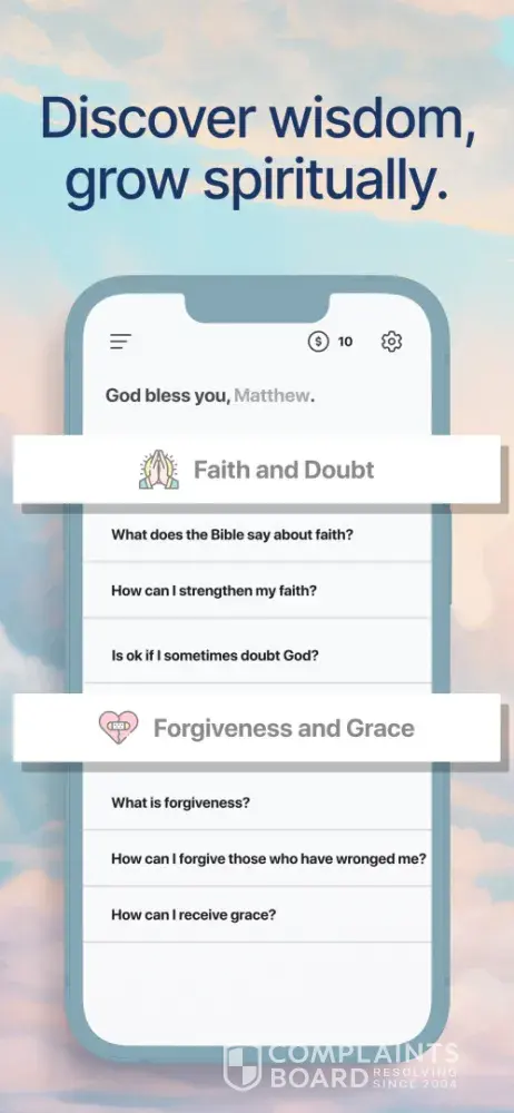 I really like the app but I think the main focus should be to help people in their walk for Christ meaning that I don’t think paying money to ask as many questions is fair. I think we should be able to already get more than 5 questions per day. What if I can’t buy it but I’m still looking for help? I just don’t like that we only get 5 free questions daily and have to pay to ask as many questions as we want…..