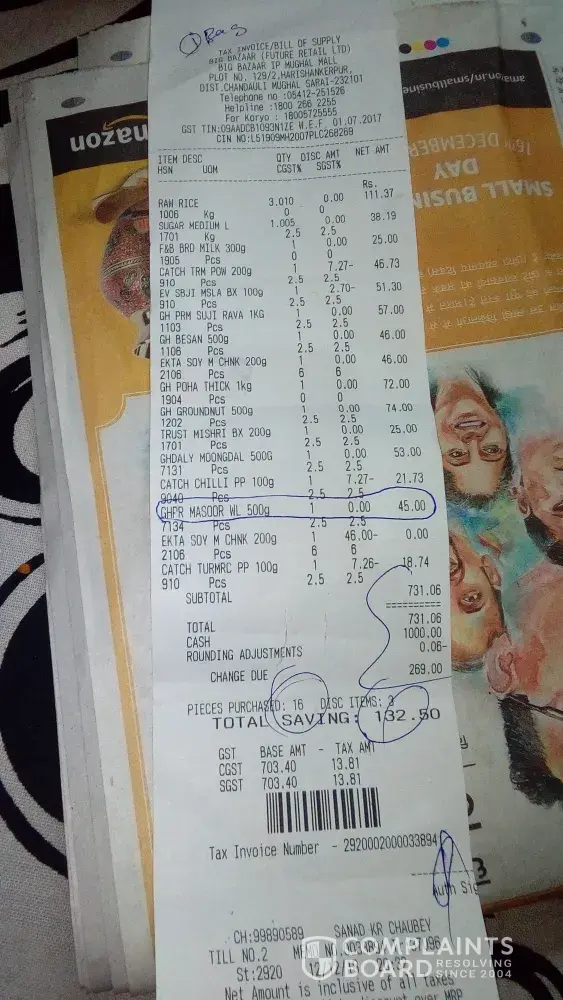 Big bazzar is serious and taking care of their customers then this is my billing details
