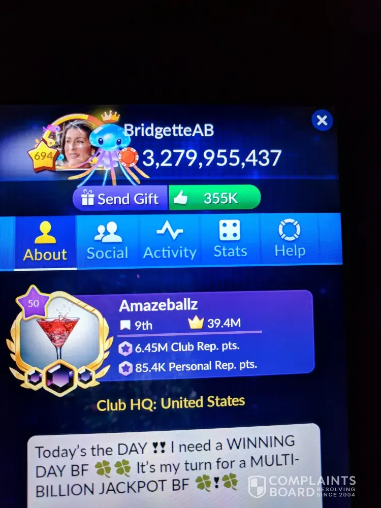 I used to love the jackpot magic slots. I love their games. Bit you just can't win anymore since Aristacrap bought them! Their customer service was the best when Churchill owned it. They actually made you feel appreciated and the actually read what you had to say! It sure as hell isn't now. Most of CS is all scripted and not even on the subject you contacted them about! They even have the nerve to tell you they didn't read your email. Then give you instructions to uninstall and reinstall. Churchill used to let us win and enjoy our purchases. They gave us perks when we spent money in Cashback bonuses popups giving us more coins to spend depending what you spent about 12-24 hrs later. My [censored] has spent thousands over the 2-3yrs I've been playing. NOT NOW. I am convinced they have an ALGORITHM that locks you down from winning when you purcase coins because it's impossible to win after a purchase and it can be up to a week before it lets go of you for a win if you don't purchase anymore coins. I confronted them on it of course the deny it saying that's the odds of the game. They are designed to give you a real casino like experience. I say [censored]. Odds are better at a real casino and you get reall vip perks. There are no perks left in the game anymore. You'd be lucky to get a random perk but they take those and the little win they might give you right back. Make a purchase it's gone in less than 5 minutes even on minimum bets! You can't even enjoy your purchase or the game.! I'm a club leader I can't even help out my club it's so bad!. It's embarrassing. I have a smaller profile I D0 NOT BUY COINS FOR. IT IS AT ABOUT 175M right now. As for this 0ne I don't think I have 50k right now. I spent over 100 this wkend trying to win for the club. I can't hit a win if it was hitting me! I keep buying in hopes the odds would be nice just once and help the club on challenges. I'm a [censored]. At least my mini profile helped the club out. Hell I opted out of the last 2 lawsuits maybe I won't the nest one.