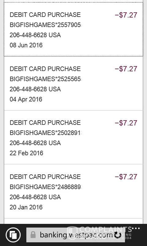 Every transaction is $7.27 AUD and there are payments dating back to 2014.