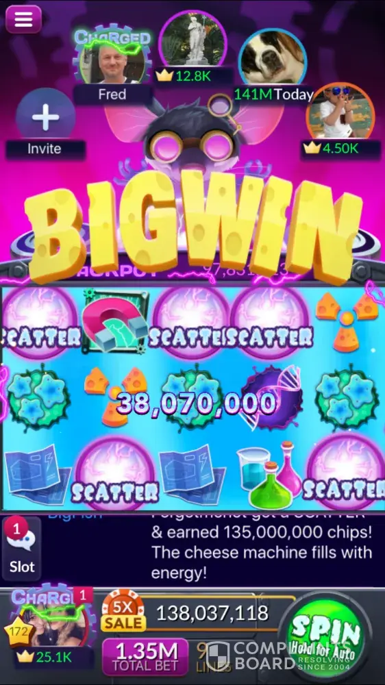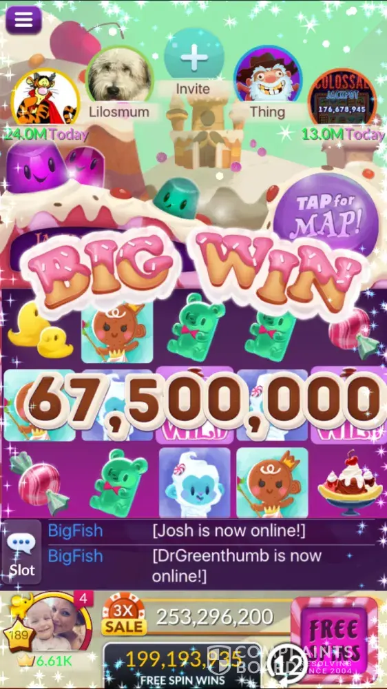 I have two complaints, I emailed and sumbittef a complaint about mad mouse and I did not receive the pot money or the 5 scatter I put in. My second complaint is I won a jackpot yesterday 7/13 and had 243 million. I did spend some and had over 200 million when I went to bed. I woke up with 2.5 million. I feel sick like bigfish took my chips. I bought several times this month and I would like all of my chips back, the jp winnings and my mad mouse. I will attach all the pictures. Please get back with me asap.
