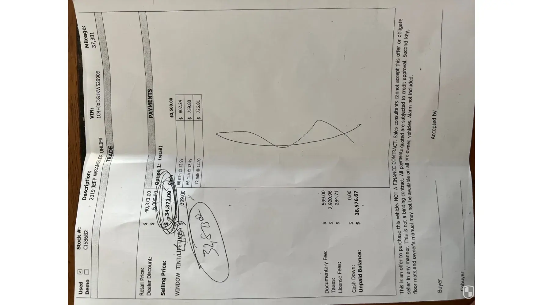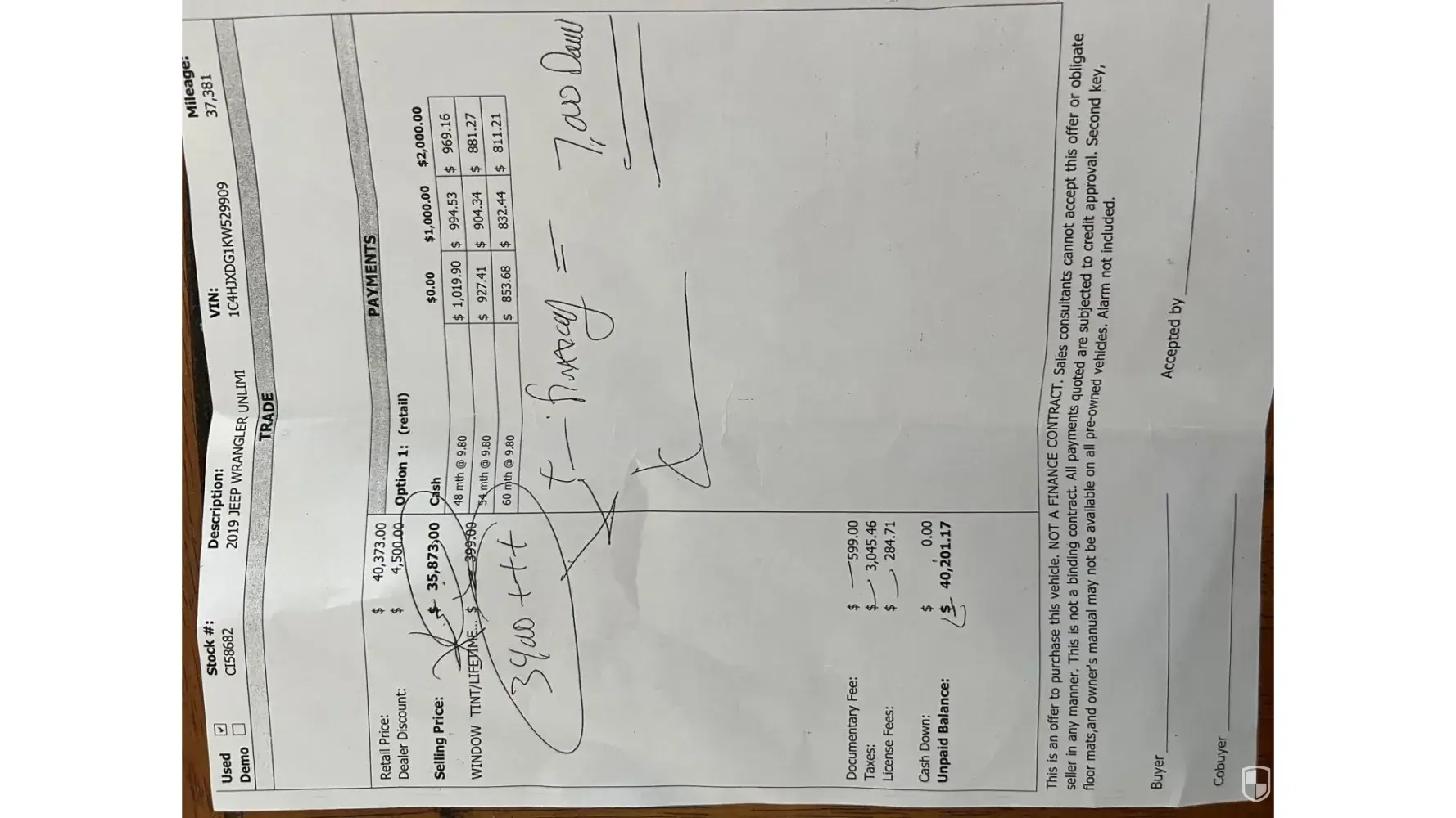 The dealership sent multiple representatives to dissuade us, claiming it was not worth that much and that selling it privately would be a huge mistake. They insisted the most our car was worth was $47,000 and presented us with an offer in writing. Despite our objections and reasoning, they remained firm until a manager intervened, insisting we were mistaken. Eventually, they increased their offer to $48,500, still maintaining that this was generous as such vehicles were not fetching higher prices and that we were getting a good deal.