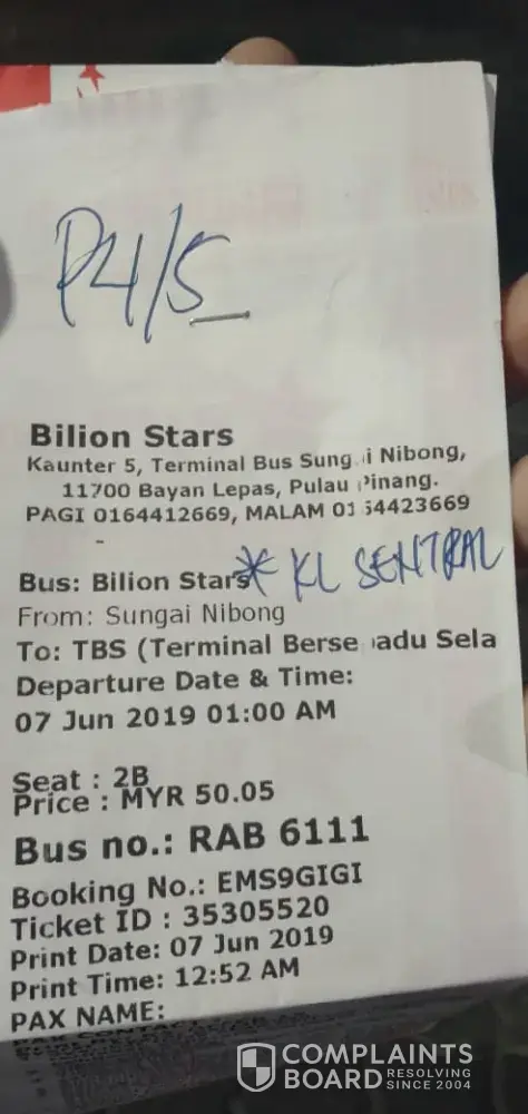 I have booked a ticket for 2 going back to SG from KL, time- 1545 hrs, bus came at 6pm! And we need to fight for our own seat because some passengers who also bought ticket suppose to depart at 1:30pm is still there waiting for their bus as well! What a terrible bus company! When we reached near JB CIQ, never say that we need to change bus, its the malay guy ( boyfriend of a filipino passenger) became the spokesperson and informed everyone that we need to change bus! They didnt even tell us personally. The driver was in SILENT MODE the entire journey. I think they dont have license to enter SG(not very sure) We have found out from other passnesgers that they do not have enough bus to cater all their online bookings. The bus that we went in is not even named as BILLION star, its just some other rental bus in malaysia. The experience is very traumatic. I felt pity to those kids and infants who suffered the same fate as ours. They dont deserve that kind of treatment so pleAse do something about it.