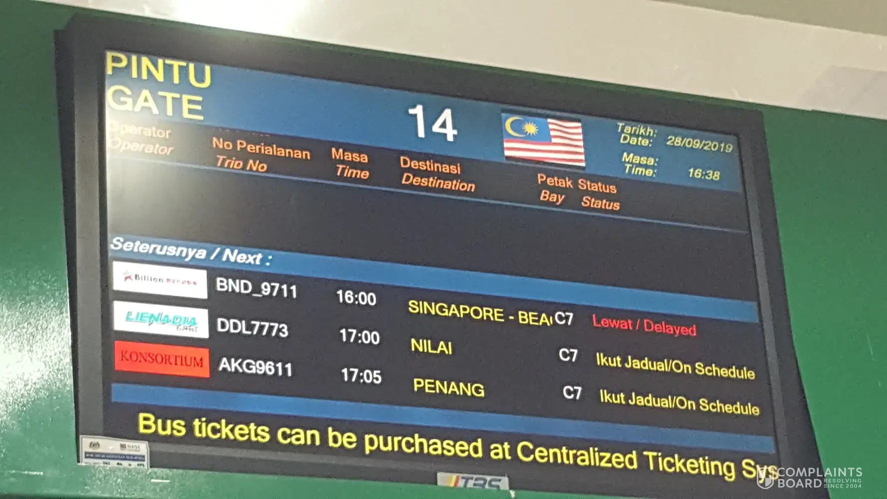 Booked a coach from Singapore to KL for 9 Aug 12.30am. When we arrived at Golden Mile on 8 Aug at 11.45pm, we saw the queue at the counter was very long and the crowd was terrible. Apparently, the buses were all delayed. We heard the bus that was supposed to depart at 10pm had not arrived yet. After a long wait, we got our bus number and we were told that the bus would arrive around 3am. To make things worse, one of the staff at the counter was very rude.