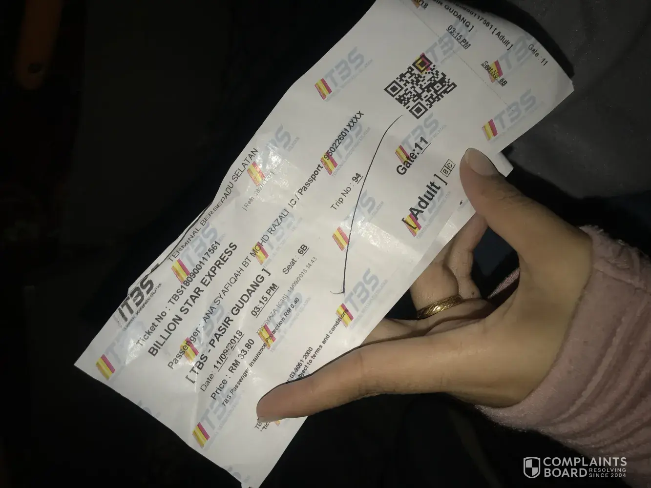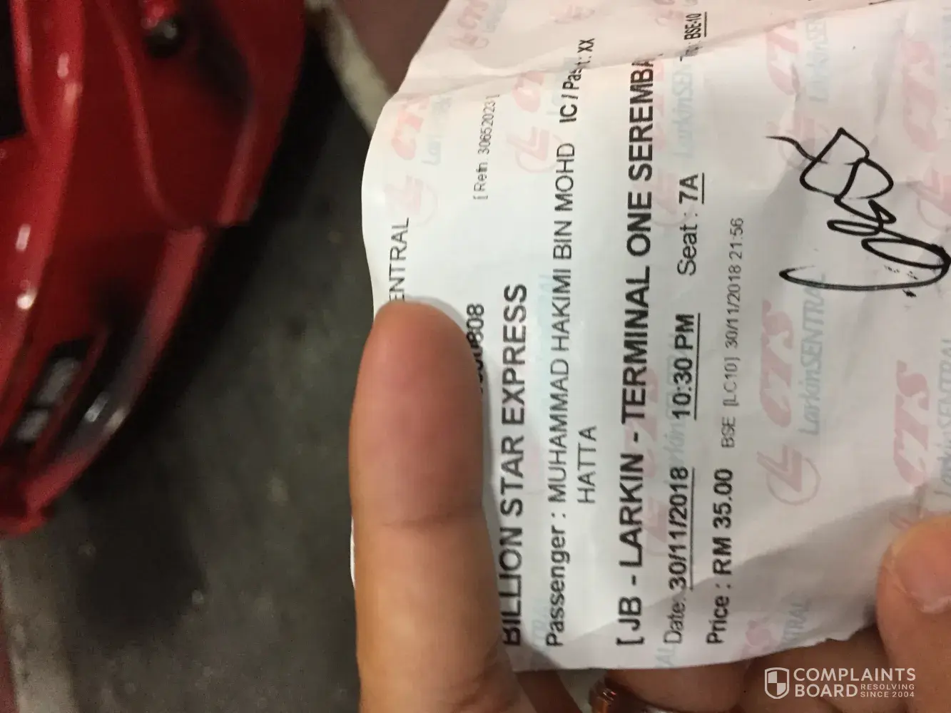 Billion Stars Express 我要投诉,2nov2018 10:30 pm bus