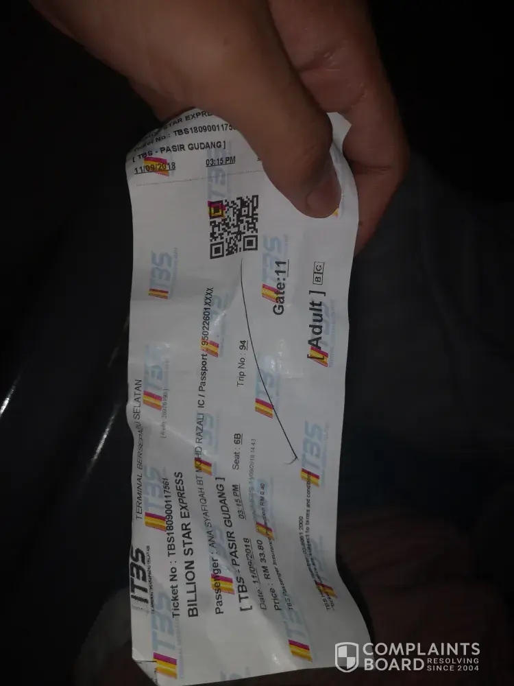 I am writing today to complain of the poor service I received from your company on October 19, 2018. I was take a ride of Billion Star Express from Penang to Kuala Lumpur Sentral (KL Sentral).