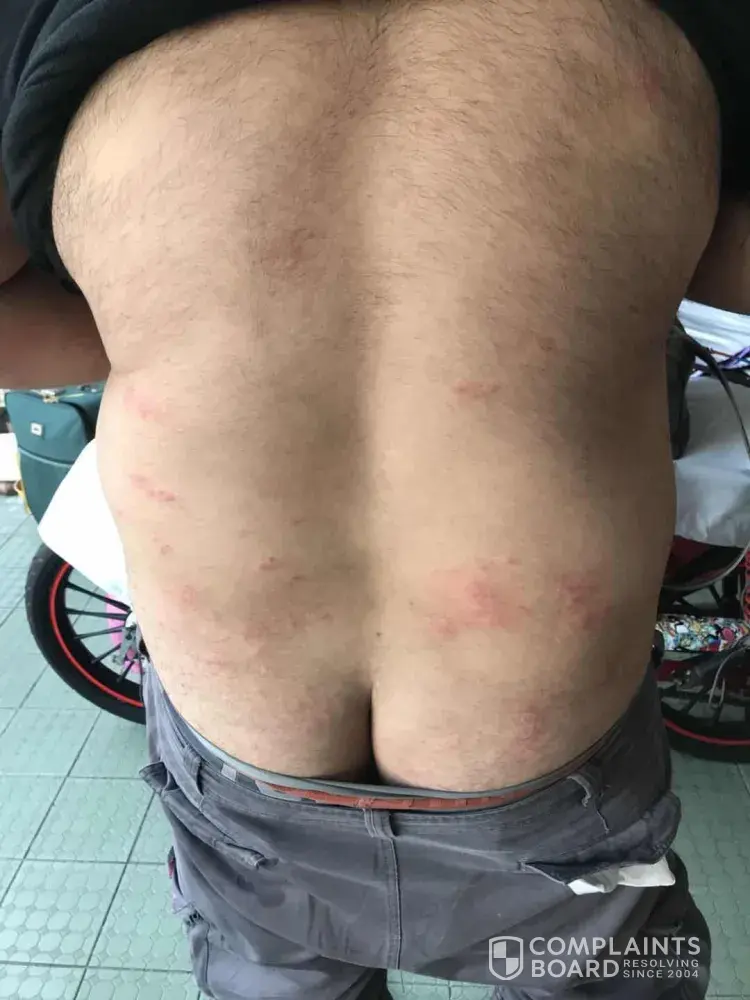 I have seriously pain & itching while travel with the bus after place sit around an hour, and i found there is mites on the seat, i'll launch report & post to facebook if there is no response or reparation for me, below ill attach information and some picture, kindly call me immediately