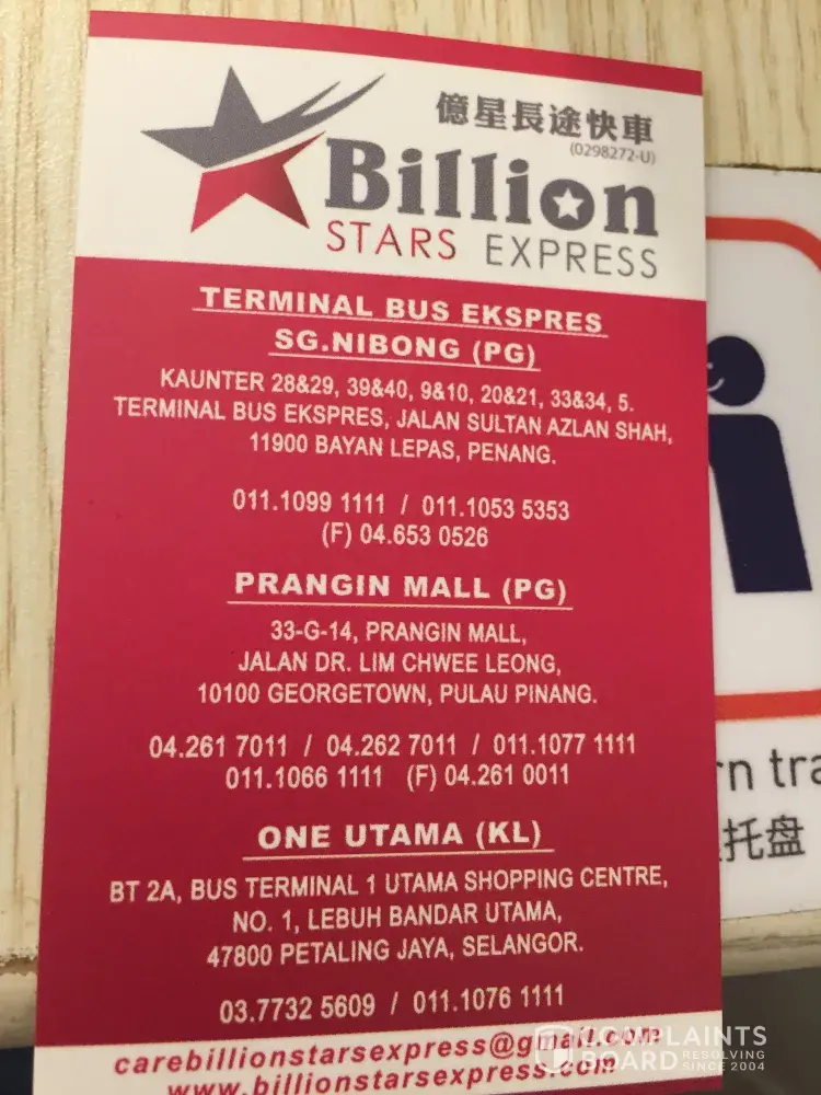 - we went to the billion stars express counter at larkin, hoping to get help, but we were told that they cannot do anything about it and that they are not connected to the billion stars express that's supposed to bring us from singapore to malacca.