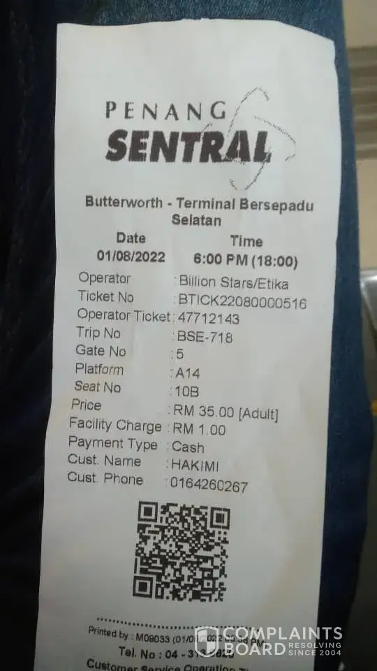 I'm here to complain about a bus license plate DDK7111 That billion star express bus. The thing is that when I want to get on the bus with an eco bag and a schoolbag I was told by an Indian driver that I can't bring my backpack on the bus and also use Speaking in an impolite tone, I was very uncomfortable but I still respected his opinion. I put the reusable bag in the car and did not bring it on the bus and reduced the weight of the backpack to get on the bus. I was told by the driver in a rude tone on the bus that he said what he said, I need to follow it. Do I need to follow it? He meant to be deprived of human rights by him. Later, I was told by another person that it was because of the rules of the bus so I had to obey. This person was a man at the station and also a Malay. I often take the billionstar bus, but I have never heard of such a thing. It is also the first time I have met. I hope your company can give me some answers. Why is this happening? Is there something wrong with the way your company is managed, or is it your employees who are using their rights without authorization? I can clearly tell your company that I am very unhappy with this bus journey because I think it is ridiculous to encounter such a thing. Even on the plane, there are instructions for hand carry and the allocation of suitcases.