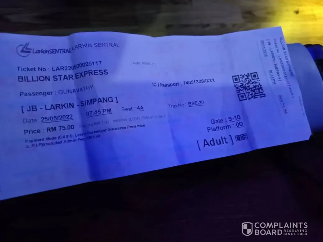 My gf bought a ticket from penang komtar to tbs, kl. The time of the ticket was clearly shown in above 8:15am. The bus come late on 9am. Ok fined wasted almost 45min of nothing. Understand that there is too early for some of driver or those drivers would like to go for breakfast or whatever [censored] 1st, can you all next time please prepare earlier drivers? Get your guts and take it as your responsibility come on! Then driver ask my gf to drop her backpack put inside the bottom chamber of the bus wtf is this [censored]? She waited your bus from 7.45am in order to punctual before 8.15am (even your ticket say so to reach 30min earlier before) but did your company apply any of the sop? Come out of all this [censored]ty rules to follow? So she need to starve herself from 8.15am to 4.30pm with a cup of milo. Wtf is this.. Here come the next issue, go sungai nibong take others passenger.. Ok fined, maybe this is what kind of whatsover the rules of the company is.. So there is a result of waiting again. The girl who sit beside the ticket was 9am of the ticket. Understand to pick up all 1st.. To save money for company save for petrol or what kind of reason behind is. Then after pick all, finally the car started to move on. Then (billion stars express) can you define what [censored]ing express is this from penang 900am to 430pm kl with status of no traffic jam in highway? How to compensate when your [censored]ing time is delayed