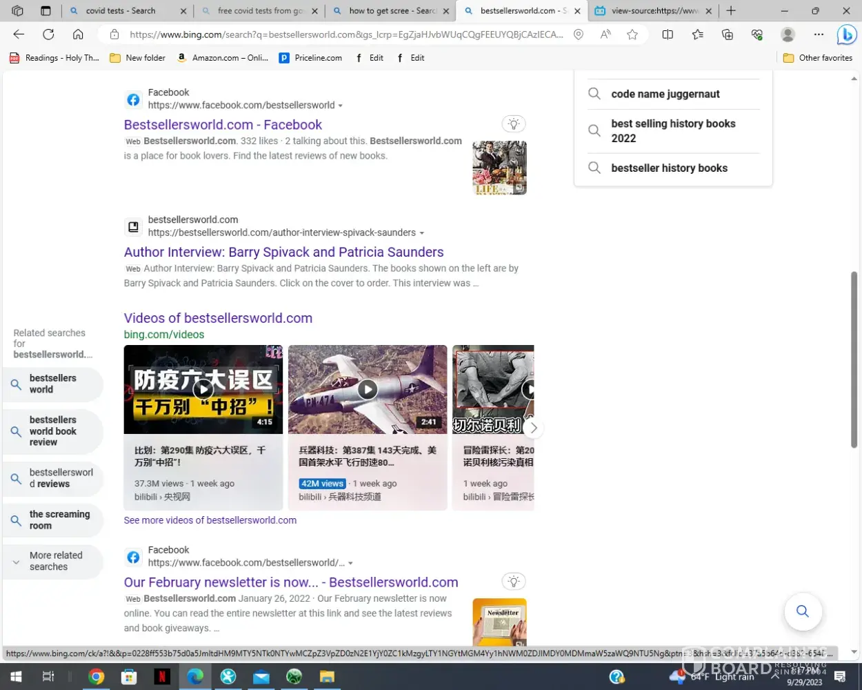 I don't know whether someone is using my URL to get something noticed or what. I have noticed this yesterday, September 28, and today September 29th. Could you investigate and see why these videos are listed for Bestsellersworld.com - They are not mine nor do they have anything to do with my website.