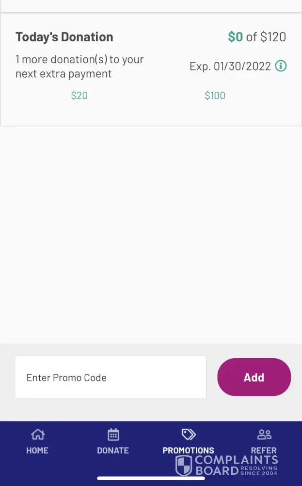 Read full complaintDonating