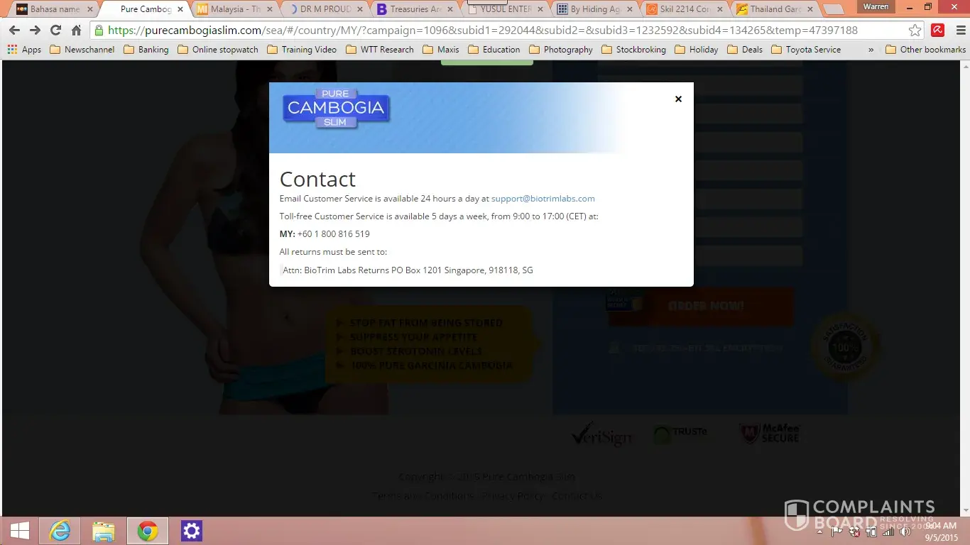 I ordered the above mentioned product in 5 September 2015 from Malaysia and cancelled the order on the same day after finding out from my credit card company that an amount more than 5 times had been charged. . However, the email [protected]@biotrimlabs.com didn't work. I had to send them a message via another link.